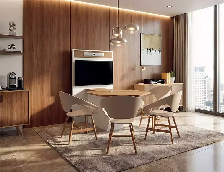 La MX TABLE permite organizar pequeñas reuniones de entre 4 y 6 personas según la versión, ya sean reuniones presenciales, presentaciones multimedia o videoconferencias.